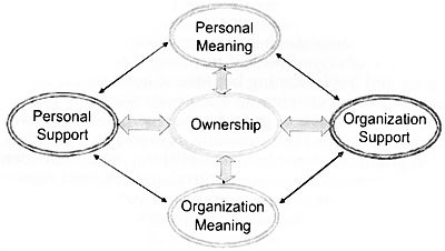 The five themes taken together suggest a set of relationships illustrated in Figure 1. The theme of ownership is seen as the central theme around which each of the four other themes revolve. The meaning-making experience of good youth work seems to begin with the construction of personal meanings which are fuelled by personal supports. These interact and influence each other, but would not necessarily become articulated or evidenced in practice for the youth worker without the sense of ownership occurring. If a sense of ownership develops for the youth worker, an interaction of organizational meaning and organizational support experiences can act as a catalyst that allows the youth worker to translate his or her personal opportunities and supports into effective practice.