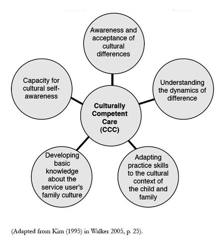 a set of knowledge-based and inter-personal skills that allow individuals to understand, appreciate and work with families of cultures other than their own (Walker, 2005, p. 24).