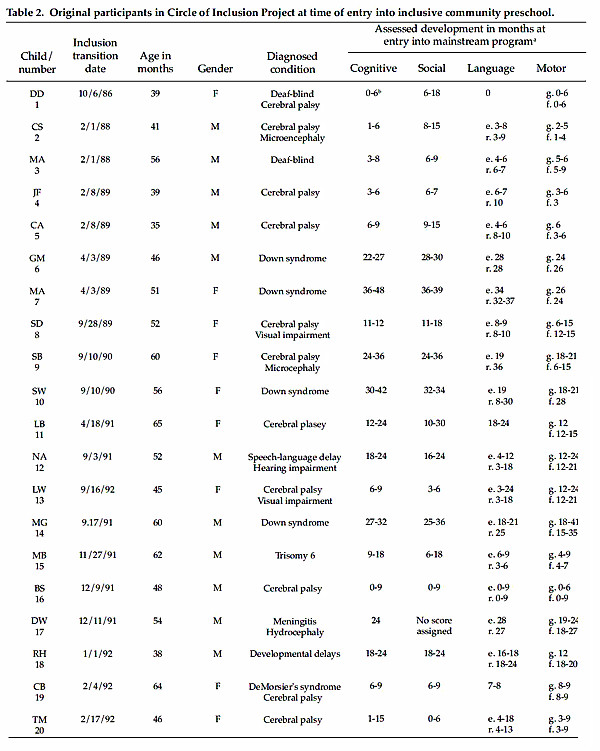 This chapter includes stories about children, results based on systematic data collection, and programmatic outcomes as well as reflections about our shared experiences over a 10-year period. All that we have to share is supported by rich empirical and theoretical literature about developmentally appropriate early childhood practices, effective early childhood special education practices, integration of children with and without disabilities, the roles of families in early childhood services, the value of the collaborative process, and issues of system change.