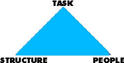 A good way to start looking at the management of internal boundaries is to allow time for the team to reflect upon those aspects of organisational structure which may have an impact on the unit. The team should reflect on the nature of the task and how the structure of the unit and the people involved in the unit have an impact on this. This can be envisaged as a triangle: